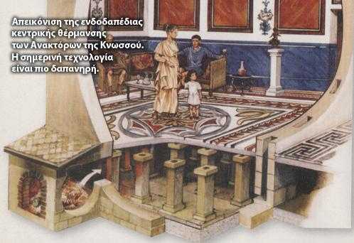 Την πανάρχαια πόλη ξέθαψε στα 1900 ο Εβανς κι αυτό σημαίνει ότι δεν ήξερε τις εκεί επιδόσεις ο Σουηδός Μ. Τρίβαλντ, που το 1716 λάνσαρε την ενδοδαπέδια θέρμανση, σε μορφή περίπου όπως είναι σήμερα.
