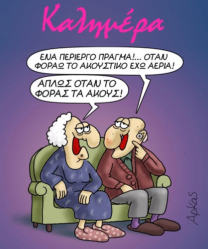 Αυτή τη φορά, πρωταγωνιστές είναι ένα ηλικιωμένο ζευγάρι, που μέσα από μια αθώα συζήτηση για το ακουστικό βαρηκοΐας, καταλήγει σε ένα απρόσμενο – αλλά ξεκαρδιστικό – σχόλιο. Με το γνώριμο ύφος του, ο Αρκάς υπενθυμίζει ότι το χιούμορ δεν έχει ηλικία και ότι οι μικρές στιγμές της ζωής μπορούν να κρύβουν το πιο αυθεντικό γέλιο.