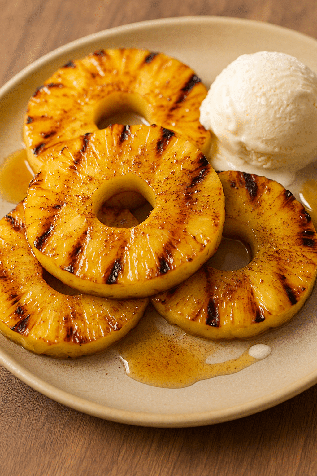 Ο ανανάς είναι από τα πιο δροσερά φρούτα του καλοκαιριού και όταν ψηθεί αποκτά μια υπέροχη καραμελωμένη γεύση. Σε συνδυασμό με μέλι, κανέλα και μια μπάλα παγωτό βανίλια, γίνεται ένα απολαυστικό επιδόρπιο που εντυπωσιάζει χωρίς κόπο.