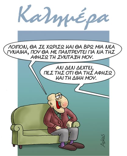 «Λοιπόν, θα σε χωρίσω και θα βρω μια νέα γυναίκα, που θα με παντρευτεί για να της αφήσω τη σύνταξή μου».
