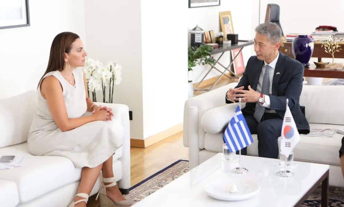 Η υπουργός Τουρισμού, Όλγα Κεφαλογιάννη, συναντήθηκε με τον Κορεάτη πρέσβη στην Ελλάδα, Γιου Σέονγκ Λιμ, εν όψει της επίσκεψης στη Νότια Κορέα, η οποία αποτελεί αγορά – στόχο σύμφωνα με την στρατηγική του υπουργείου.
