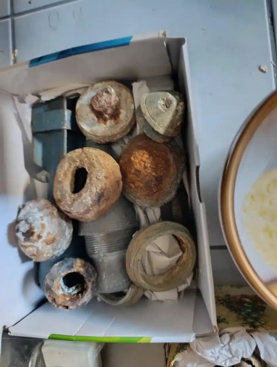 Πιο συγκεκριμένα, μέσα στον κάδο εντοπίστηκαν: 2 μοχλοί απελευθέρωσης χειροβομβίδας arges σε οξειδωμένη μορφή, 1 αμυντική χειροβομβίδα με πυροδοτικό, 10 κεφαλές βλημάτων όλμου οξειδωμένες, διάφορα υπολείμματα από βλήματα όλμου, φυσίγγια διαφορετικών διαμετρημάτων, ένα αποσυναρμολογημένο όπλο χειρός 22mm, διάφορα οξειδωμένα εξαρτήματα όπλων του Β’ Παγκοσμίου Πολέμου, 3 κορμοί από περίστροφα, ένας σιδερένιος κορμός από υποπολυβόλο Thomson, φυσιγγιοθήκες, κλείστρα από όπλα της ίδιας εποχής, κορμός από οξειδωμένο πολυβόλο αγνώστου τύπου, 2 σιδερογροθιές, 1 ζευγάρι χειροπέδες, δύο πτυσσόμενα γκλομπ, διάφορα εξαρτήματα οπλισμού και 14 θρησκευτικές εικόνες.