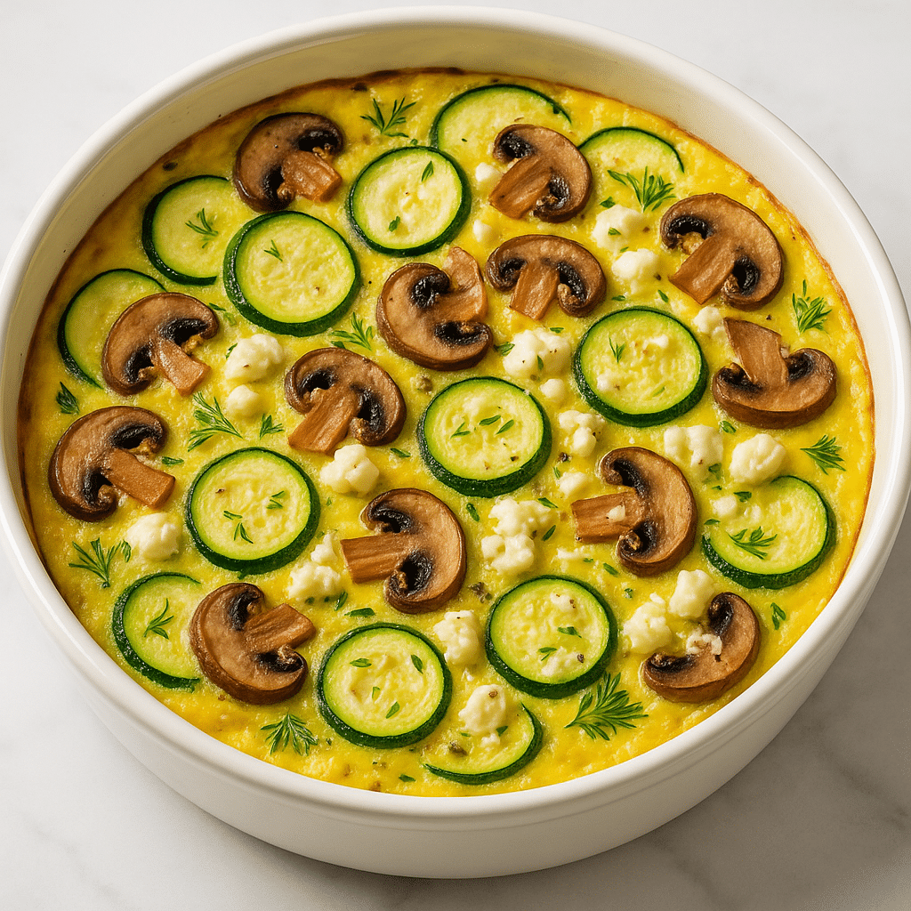 Μια αφράτη ομελέτα ψημένη στο φούρνο, γεμάτη με φρέσκα κολοκυθάκια, αρωματικά μανιτάρια και πλούσιο κατσικίσιο τυρί. Ιδανική για ένα χορταστικό πρωινό, ελαφρύ μεσημεριανό ή ακόμα και για βραδινό με μια πράσινη σαλάτα στο πλάι.