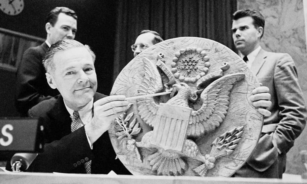 Πριν από ογδόντα χρόνια, στις τελευταίες εβδομάδες του Β’ Παγκοσμίου Πολέμου, μια ομάδα Ρώσων προσκόπων παρέδωσε στον πρεσβευτή των ΗΠΑ στη Μόσχα, W. Averell Harriman, ένα χειροποίητο ανάγλυφο με το Μεγάλο Σφραγιστικό των Ηνωμένων Πολιτειών, στο επίσημο σπίτι του – το Spaso House. Το δώρο συμβόλιζε τη συνεργασία Ρωσίας και ΗΠΑ κατά τη διάρκεια του πολέμου, και ο πρεσβευτής το κρέμασε με υπερηφάνεια στον τοίχο του μέχρι το 1952.