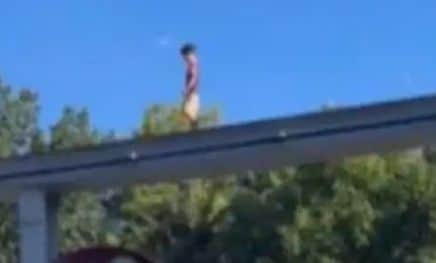 Οι επισκέπτες του λούνα παρκ προσπαθούσαν να κατευθύνουν το παιδί σε ένα κτήριο, όπου το περίμενε ένας άνδρας για να το πιάσει. «Πήγαινε σε αυτόν τώρα!» ακούγεται να φωνάζει κάποιος, λίγο πριν ο άντρας στην ταράτσα πηδήξει πάνω στις ράγες.