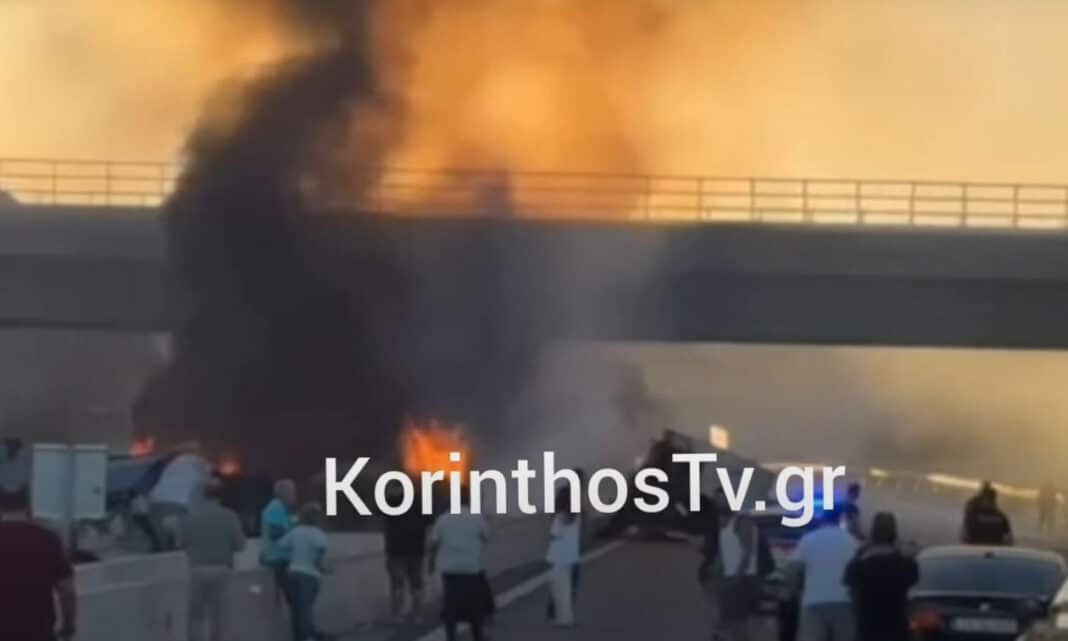Τρομακτικές εικόνες στην Αθηνών-Κορίνθου: Φορτηγό τυλίχθηκε στις φλόγες – Βίντεο