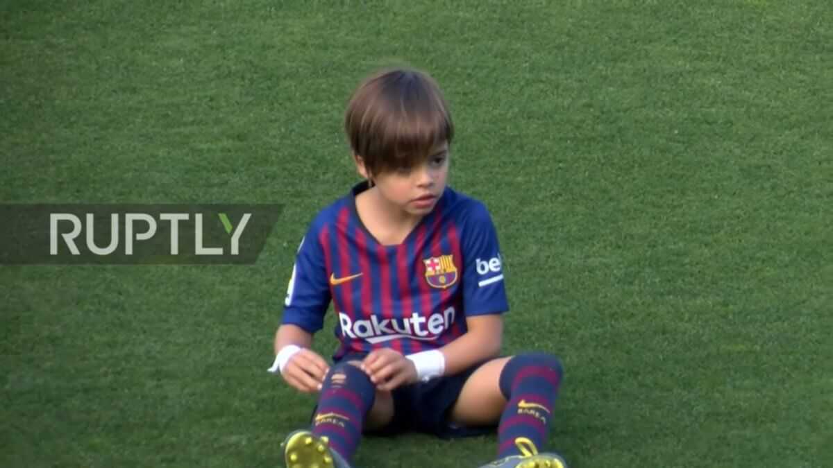 Ένα παιδάκι με πλήρη ενδυμασία της Μπαρτσελόνα κέντρισε το ενδιαφέρον μετά το τέλος της προπόνησης της πρώτης ομάδας, καθώς μόλις στην ηλικία των 6 ετών, έδειξε να γνωρίζει ήδη τα βασικά.