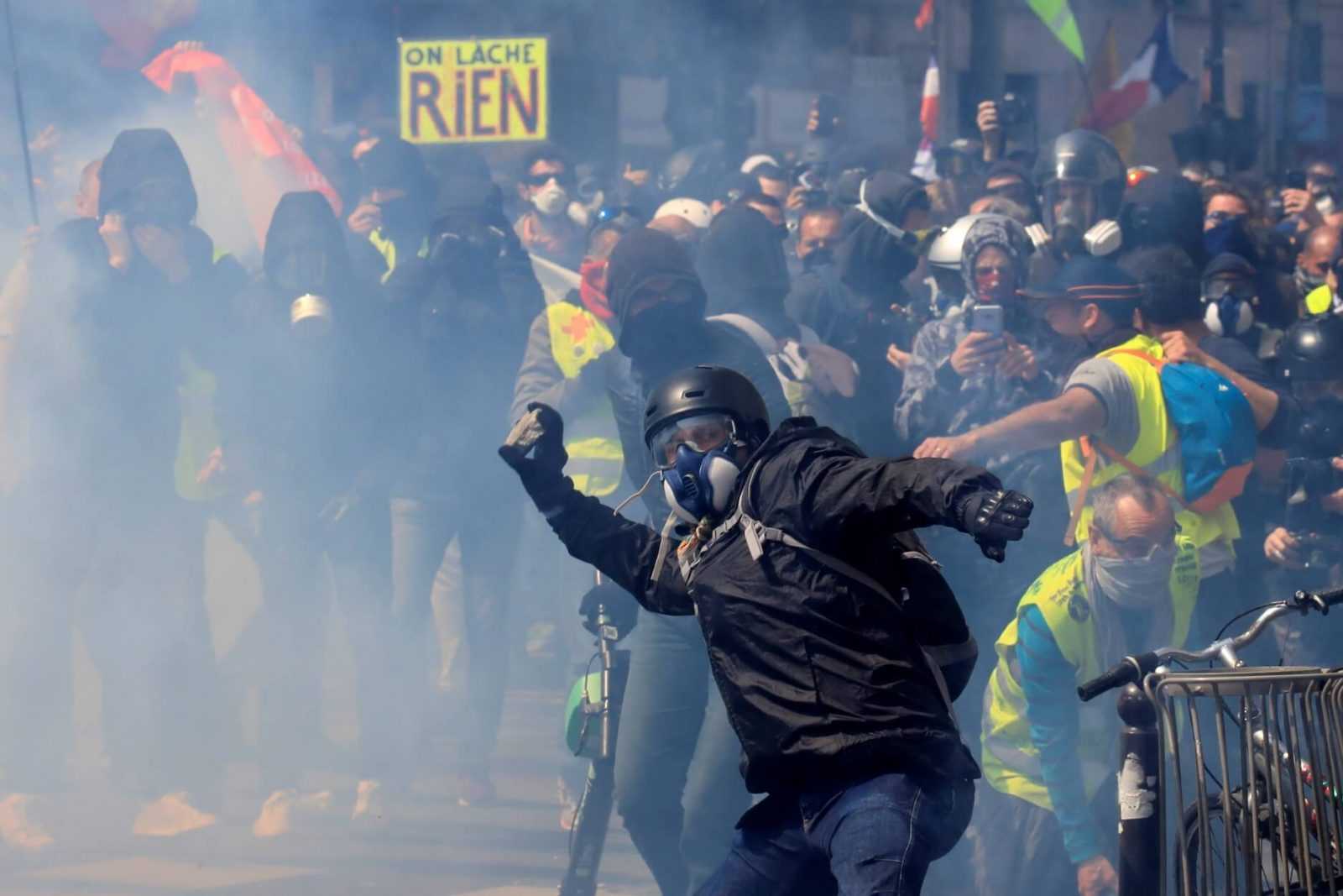Συμπλοκές και δακρυγόνα μεταξύ της γαλλικής αστυνομίας και κουκουλοφόρων διαδηλωτών που ενώθηκαν με τα “Κίτρινα Γιλέκα” για την Εργατική Πρωτομαγιά στο Παρίσι.