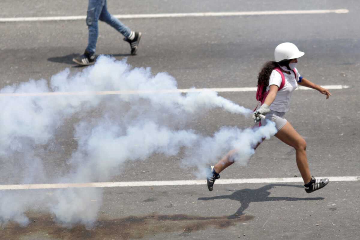 Οι διαδηλωτές προσπαθούσαν να αποκλείσουν αυτοκινητόδρομο που περνά μπροστά από την αεροπορική βάση La Carlota, από όπου ο Χουάν Γκουαϊδό διαβεβαίωσε χθες ότι έχει την υποστήριξη ομάδας στρατιωτών.