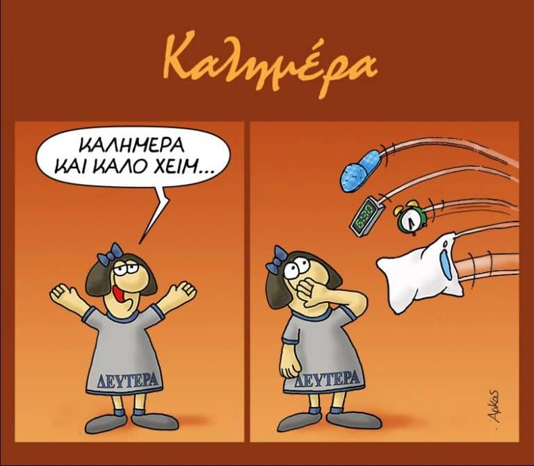 Μια ακόμη χιουμοριστική αλλά και σατιρική «Καλημέρα» δημοσίευσε σήμερα ο Αρκάς, σχολιάζοντας με τον μοναδικό του τρόπο την αρχή της νέας εβδομάδας και την «παρεξηγημένη» μέρα, τη Δευτέρα.