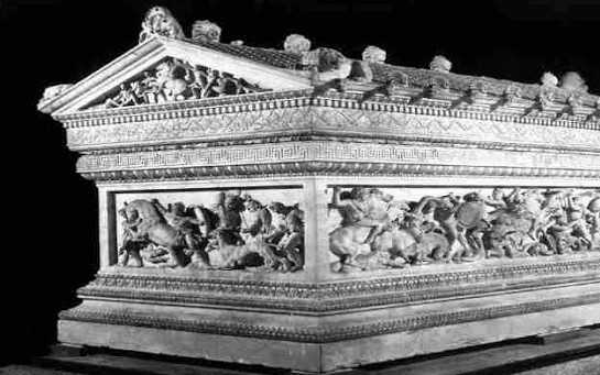 Αυτά τα διακοσμητικά όμως φέρονται να υπάρχουν και στη σαρκοφάγο της Σιδώνας.
