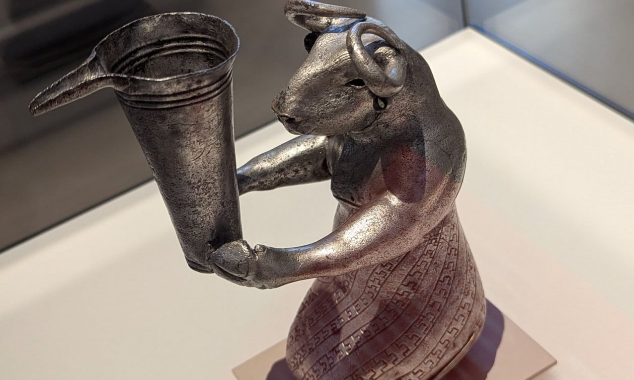 Ένα ασημένιο ειδώλιο 5.000 ετών που απεικονίζει έναν ταύρο γονατισμένο σε ανθρωπόμορφη στάση να κρατάει ένα αγγείο με στόμιο, έχει προκαλέσει την περιέργεια των ερευνητών.
