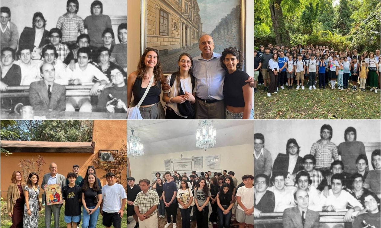 Ο Διευθυντής κ. Γιάννης Δερμιτζόγλου με μαθητές του ιστορικού Ζωγραφείου σχολείου Κωνσταντινούπολης.