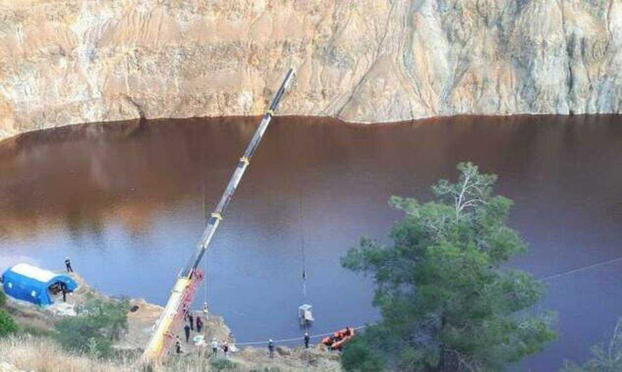 Ο δύτης, με τη βοήθεια ενός ειδικού σιδερένιου κουβουκλίου, που φέρει γερανοφόρο όχημα, καταδύθηκε νωρίτερα στη λίμνη, όπου συνεχίζονται οι έρευνες των αρχών για εντοπισμό των σορών θυμάτων, που φέρεται να δολοφόνησε ο 35χρονος ίλαρχος της Εθνικής Φρουράς.