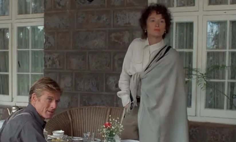 Στη σκηνή αυτή, ο Ρέντφορντ, που υποδύεται έναν κυνηγό μεγάλων θηραμάτων, λούζει τα μαλλιά της Δανέζας βαρόνης που υποδύεται η Στριπ, δίπλα σε ένα ποτάμι στην Κένυα.