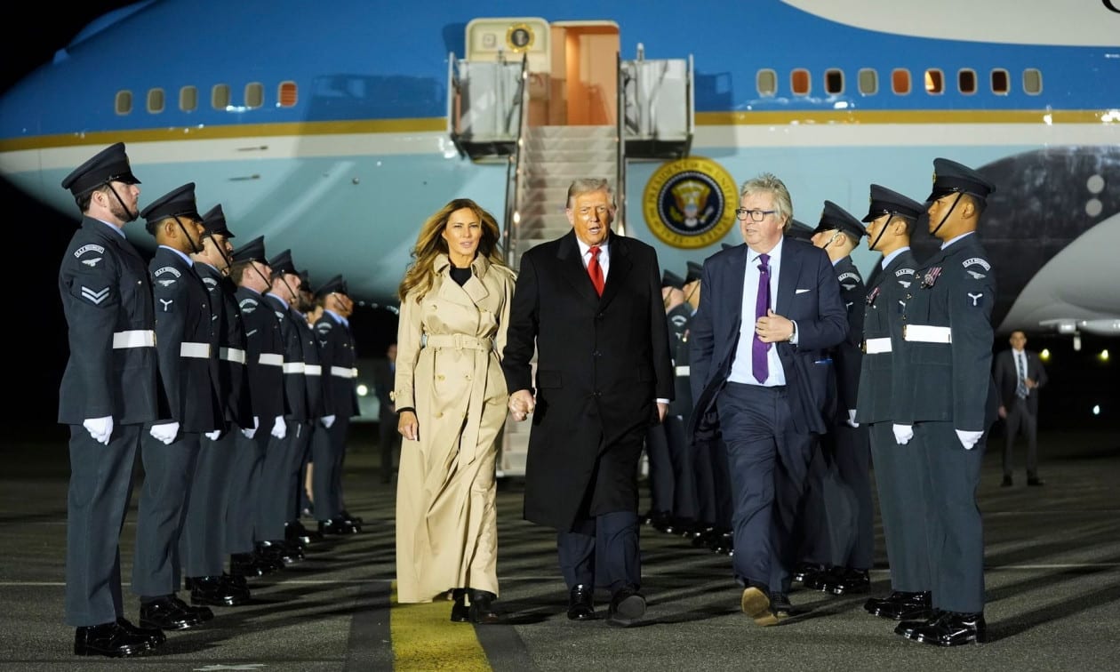 Ο Αμερικανός πρόεδρος Ντόναλντ Τραμπ και η σύζυγός του Μελάνια επιβιβάστηκαν στη συνέχεια σε ελικόπτερο προκειμένου να μεταβούν στην κατοικία του πρεσβευτή των ΗΠΑ.
