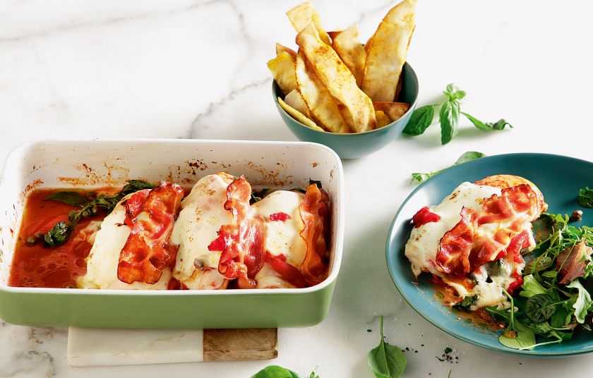 Η ιδέα της σεφ είναι απλή και συναρπαστική: δίνει στο κοτόπουλο τον ρόλο της ζύμης πίτσας και πάνω του στρώνει τα άλλα υλικά!