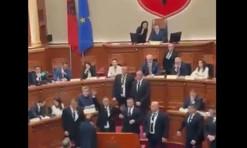 Σε σκηνές-παράδειγμα κοινοβουλευτισμού, δύο βουλευτές πέταξαν βιβλία με το Σύνταγμα και τον κανονισμό πάνω από το κεφάλι του Αλβανού πρωθυπουργού, Έντι Ράμα.
