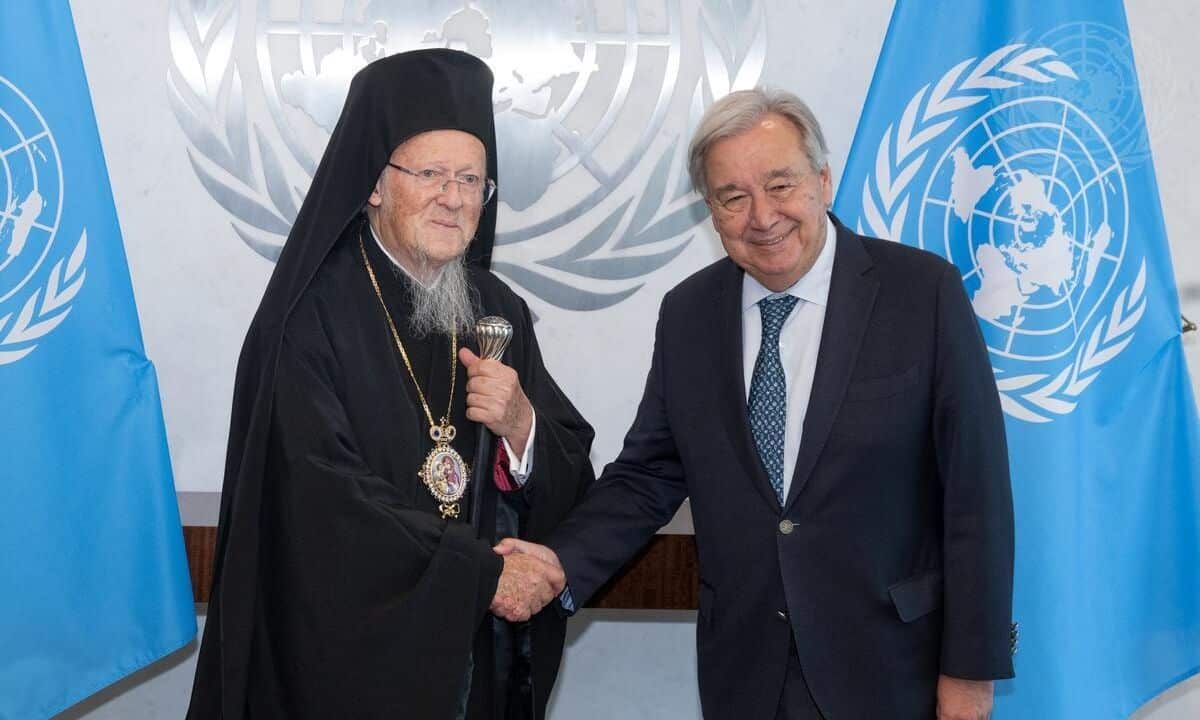 Στο πλαίσιο της Πατριαρχικής και Αποστολικής Επίσκεψης του στις Ηνωμένες Πολιτείες, ο Οικουμενικός Πατριάρχης Βαρθολομαίος συναντήθηκε το μεσημέρι της Πέμπτης 18 Σεπτεμβρίου 2025, με τον Γενικό Γραμματέα του Οργανισμού Ηνωμένων Εθνών, Αντόνιο Γκουτέρες, στην έδρα του τελευταίου στη Νέα Υόρκη.