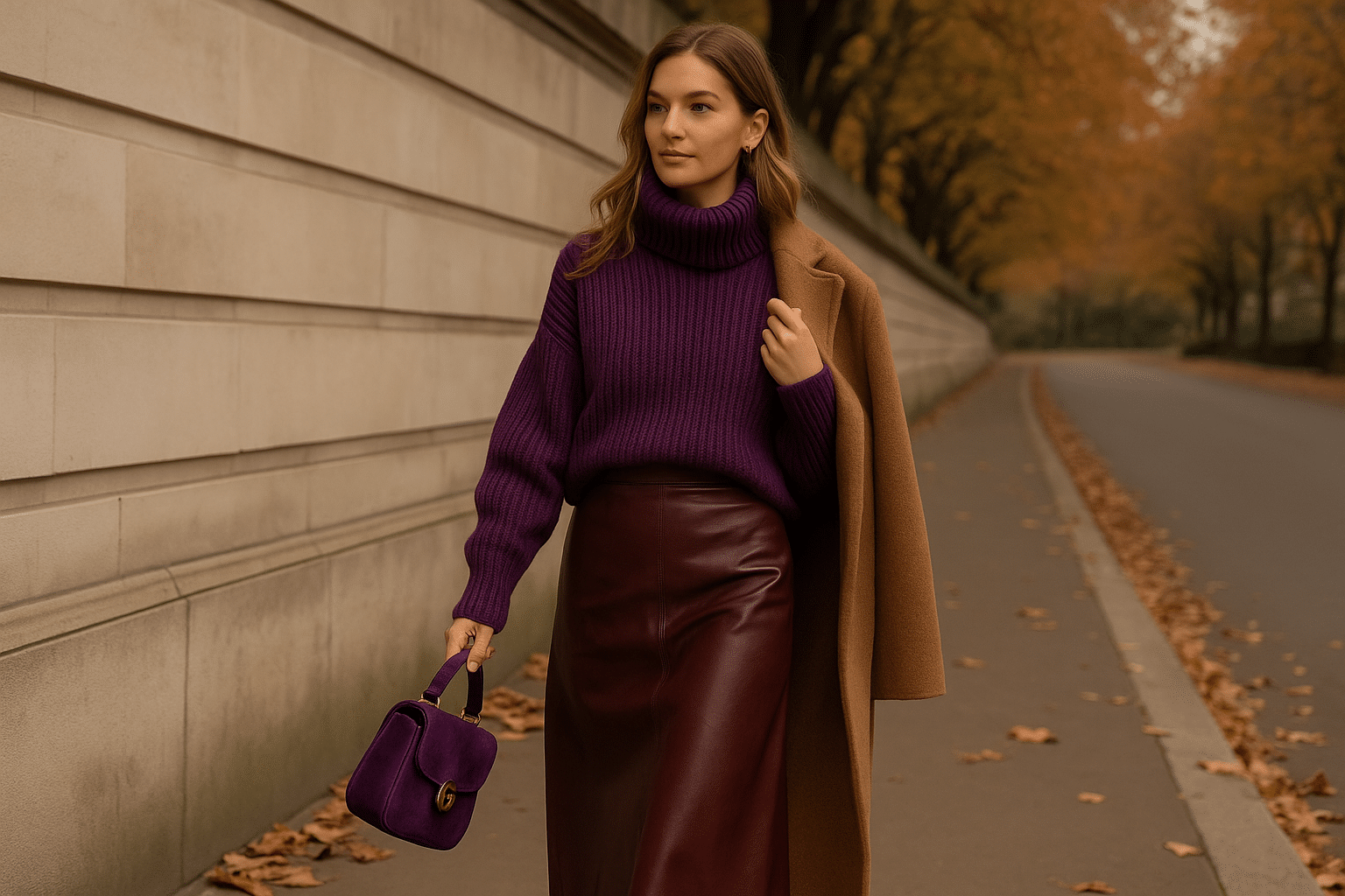 Το μοβ συνδέεται με τη δύναμη και τη δημιουργικότητα. Φέτος επανέρχεται πιο έντονο από ποτέ, σε βελούδινες αποχρώσεις που θυμίζουν σταφύλι και κρασί. Οι Lanvin και Dries Van Noten παρουσίασαν total looks που ανέδειξαν την κομψότητα του χρώματος, ενώ οι Miu Miu και Gucci το ενσωμάτωσαν σε αξεσουάρ, όπως τσάντες και μπότες. Ένα πουλόβερ σε plum απόχρωση ή ένα σακάκι σε μοβ συνδυασμένο με δερμάτινη φούστα αποτελούν ιδανικές επιλογές για τις πρώτες φθινοπωρινές εμφανίσεις.