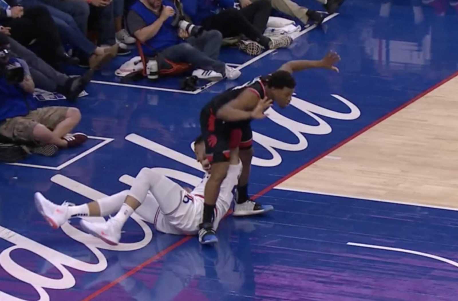 Λόουρι και Σίμονς προσπάθησαν για το ριμπάουντ, μετά από μια ανεπιτυχή προσπάθεια των 76ers. Οι δύο αθλητές πήραν θέση κάτω από τη ρακέτα, με τον παίκτη των γηπεδούχων να προσπαθεί να πιάσει την μπάλα και αλλά να πέφτει στο παρκέ, αφού ο αντίπαλος του έβαλε καλύτερα το σώμα του.