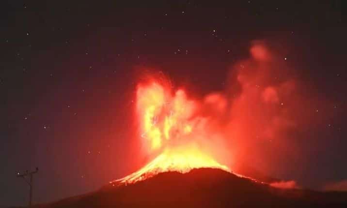 Οι αρχές εξέδωσαν μέγιστο συναγερμό, με αποτέλεσμα να κλείσει η λειτουργία ενός τοπικού αεροδρομίου το Σάββατο -Η έκρηξη εκτόξευσε ηφαιστειακό υλικό έξι χιλιόμετρα πάνω από τις κορυφές της