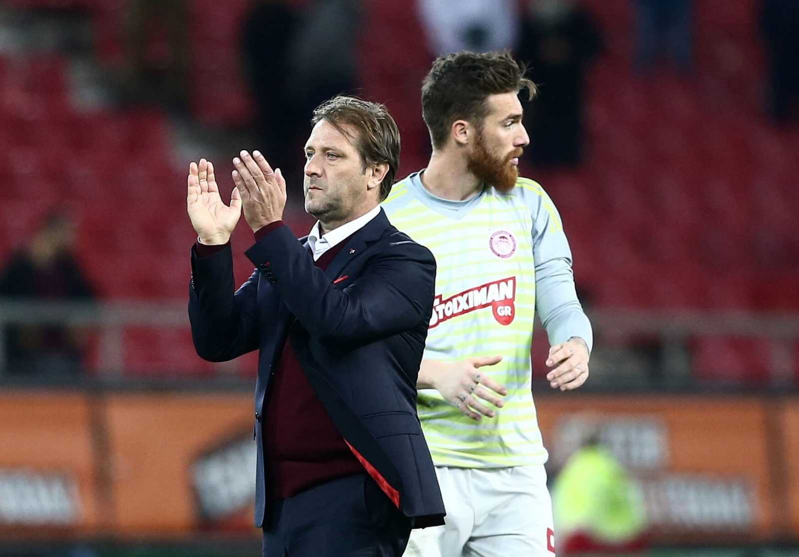 -την αγωνιστική συμπεριφορά των παικτών: «Πάντα υπάρχει κίνητρο, ακόμη κι όταν δεν διεκδικείς το πρωτάθλημα. Είχα υποσχεθεί εξ αρχής πως η ομάδα θα έχει πάντα κίνητρο και ενθουσιασμό. Χάσαμε κάποια ματς λόγω έλλειψης αποτελεσματικότητας και αυτοί οι βαθμοί ίσως τελικά μας στοίχισαν και τον τίτλο. Δείξαμε όμως ότι η ομάδα έχει χαρακτήρα, ποιότητα και βελτιωνόταν. Με 20 καινούρια πρόσωπα ήταν δύσκολο να το πετύχουμε, αλλά τώρα η ομάδα είναι πιο ώριμη, πιο σταθερή και αποτελεσματική. Αυτή η ομάδα έχει αποδείξει πως είναι ταυτισμένη με τον κόσμο. Είμαστε δω για να πάρουμε τα αποτελέσματα που θέλουμε μέσα κι έξω από το ‘Καραϊσκάκης’. Η τελευταία εβδομάδα των προπονήσεων είναι χαρακτηριστική της δουλειάς που γίνεται φέτος, γιατί οι παίκτες έχουν την ίδια χαρά και διάθεση. Η απόδοσή τους ήταν ίδια, όπως κάνουμε όλη τη σεζόν. Θέλουμε να πάρουμε μια νίκη για να τελειώσουμε καλά τη σεζόν».