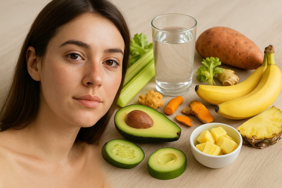 Οι τροφές πλούσιες σε κάλιο, όπως το αβοκάντο και οι μπανάνες, ρυθμίζουν την ισορροπία υγρών στον οργανισμό. Το κάλιο βοηθά να απομακρύνεται το νάτριο μέσω των ούρων, με αποτέλεσμα λιγότερο πρήξιμο στο πρόσωπο αλλά και στα άκρα.