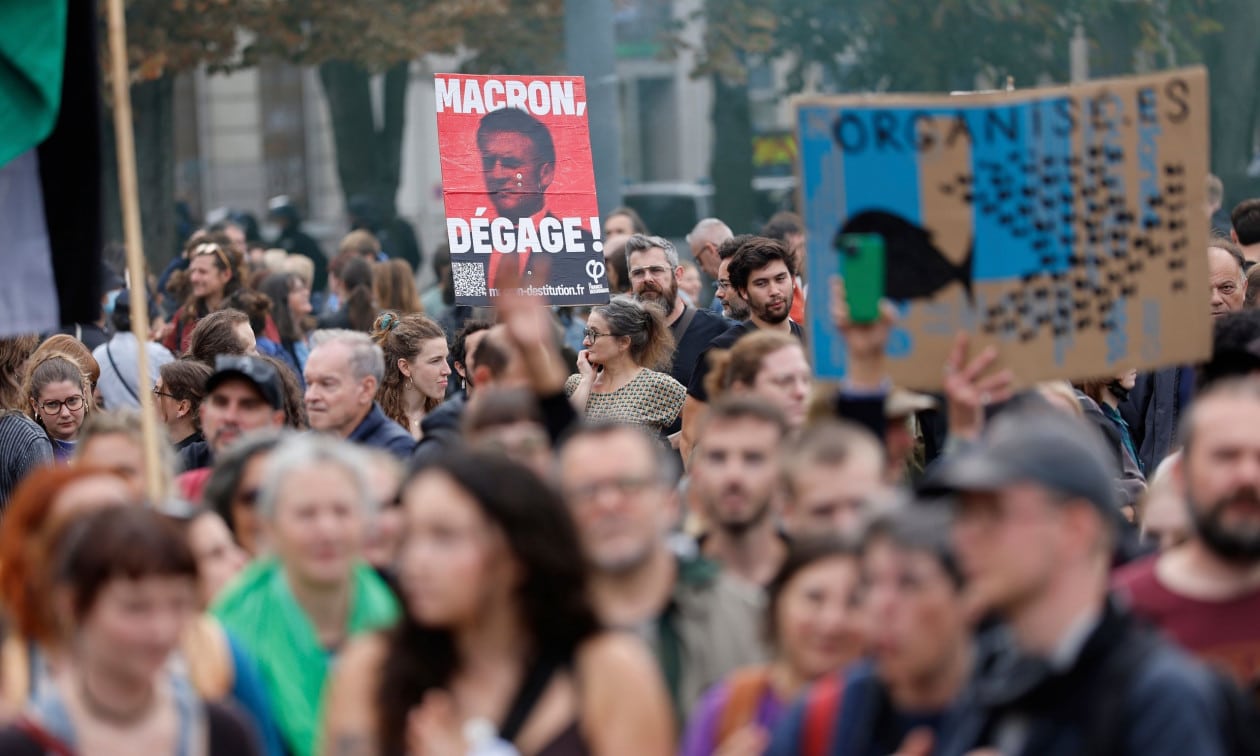 Διαδηλωτές κατά των περικοπών στο Παρίσι την Πέμπτη 18 Σεπτεμβρίου 2025.