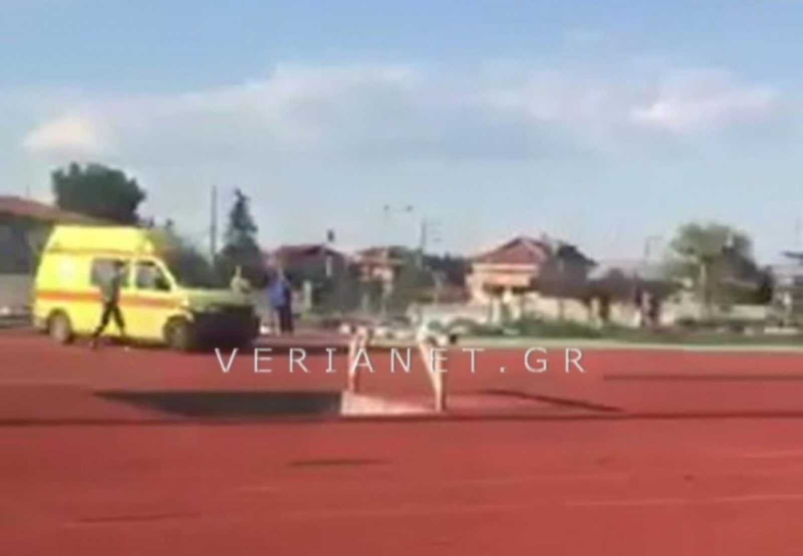 Το σοκαριστικό περιστατικό σημειώθηκε στις 6:30 το απόγευμα της Πέμπτης στο ΔΑΚ Βέροιας «Δ. Βικέλας» όπου ο 17χρονος αθλητής του επι κοντώ εκτελούσε πρόγραμμα προπόνησης.