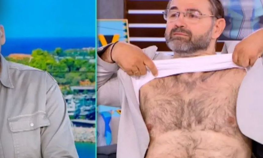 Ο Σταύρος Μπαλάσκας σήκωσε τη μπλούζα του και έδειξε το στήθος του στον «αέρα» της εκπομπής «Το Πρωινό» στον ΑΝΤ1 με τον Γιώργο Λιάγκα να μένει άφωνος.