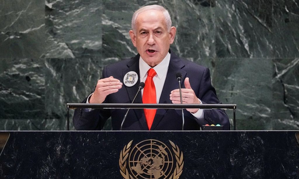 Μια κίνηση υψηλού συμβολισμού αλλά και έντονης πρόκλησης πραγματοποίησε ο πρωθυπουργός του Ισραήλ, Μπενιαμίν Νετανιάχου, κατά την ομιλία του στη Γενική Συνέλευση των Ηνωμένων Εθνών σήμερα, Παρασκευή 26 Σεπτεμβρίου. Ο Νετανιάχου εμφανίστηκε φορώντας μια μεγάλη καρφίτσα στο πέτο του, η οποία έφερε έναν κωδικό QR, καλώντας τους παρευρισκόμενους και τους τηλεθεατές να τον σκανάρουν.