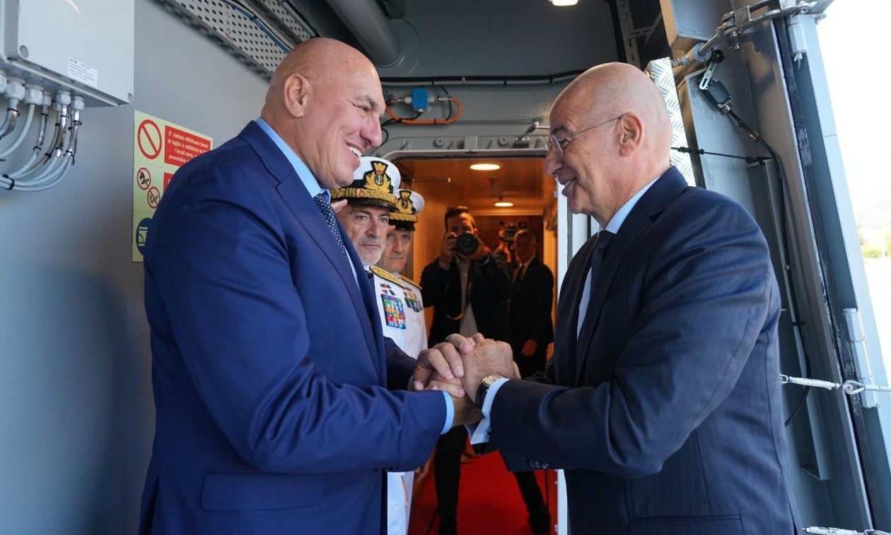 Ο Έλληνας υπουργός Εθνικής Άμυνας συναντήθηκε με τον Ιταλό ομόλογό του, Γκουίντο Κροσέτο, σε φρεγάτα του ιταλικού Πολεμικού Ναυτικού