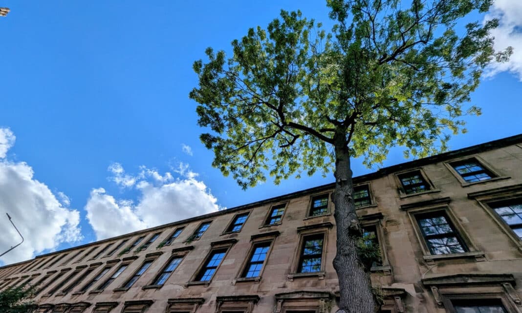 Το υψωμένο πάνω από τις σειρές σπιτιών από ψαμμίτη, το δέντρο στην οδό Argyle Street της Γλασκώβης επέζησε από την πρόσφατη επιδημία που έπληξε τις φλαμουριές, καθώς και τους βομβαρδισμούς της Clydeside αλλά και την πρόσφατη αστική ανάπτυξη.