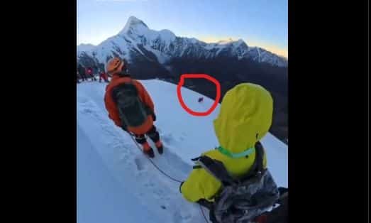 Τραγική ήταν η απόφαση ενός άνδρα να λύσει το σχοινί ασφαλείας για να τραβήξει φωτογραφίες στη χιονισμένη κορυφή Nama, στην επαρχία Σιτσουάν της Κίνας, ενός βουνού ύψους άνω των 5.500 μέτρων.