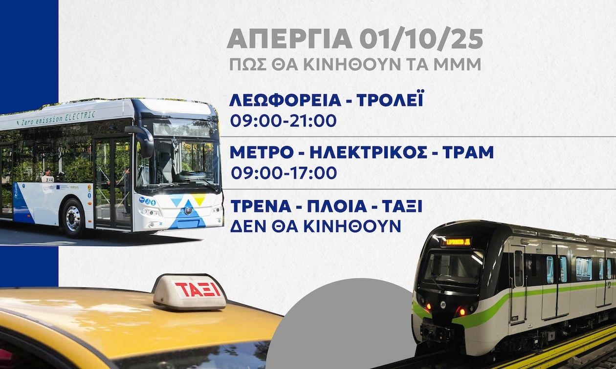 Το Μετρό (Γραμμές 2 & 3), η Γραμμή 1 (Ηλεκτρικός) και το Τραμ θα λειτουργήσουν από τις 09:00 έως τις 17:00, ώστε να διευκολυνθεί η μετακίνηση των απεργών στα συλλαλητήρια.
