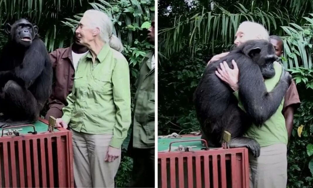 Μία χαρακτηριστική στιγμή της σύνδεσης που είχε η Γκούντολ με τους χιμπατζήδες είναι εκείνη που αποτυπώνει την απελευθέρωση ενός χιμπατζή που γλίτωσε από τον θάνατο, το 2013 – όταν το ζώο γύρισε και αγκάλιασε τη σπουδαία επιστήμονα πριν φύγει για να ζήσει ελεύθερα στη φύση.