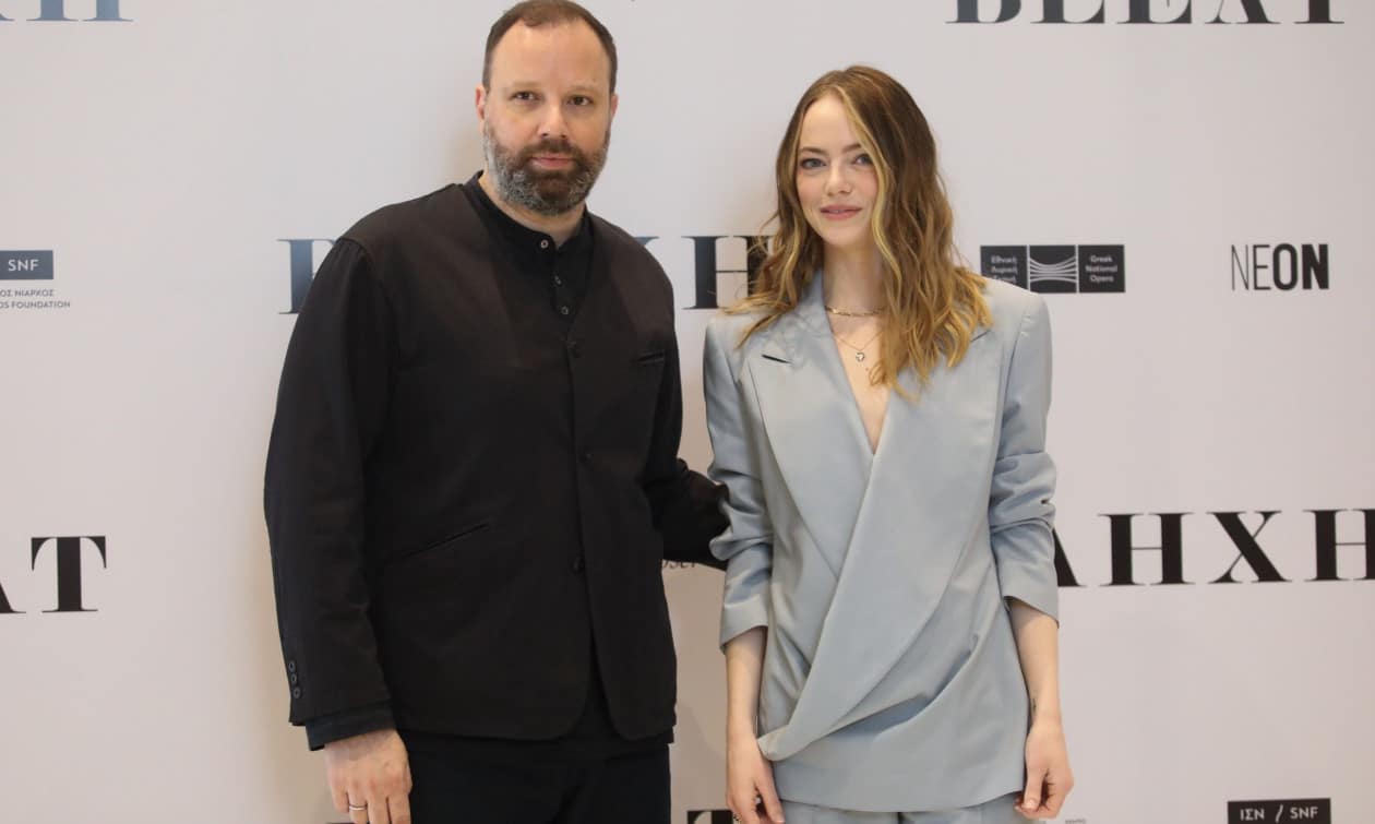 Ηχογραφημένο μήνυμα της Έμα Στόουν στα ελληνικά «έπαιξε» από το κινητό του ο Γιώργος Λάνθιμος, στην πανελλήνια πρεμιέρα της νέας του ταινίας «Βουγονία».