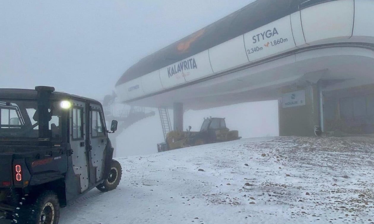 Συγκεκριμένα, το χιόνι έπεσε στην κορυφή του Χελμού, στο Χιονοδρομικό Κέντρο Καλαβρύτων, δημιουργώντας ένα απρόσμενα χειμωνιάτικο σκηνικό.
