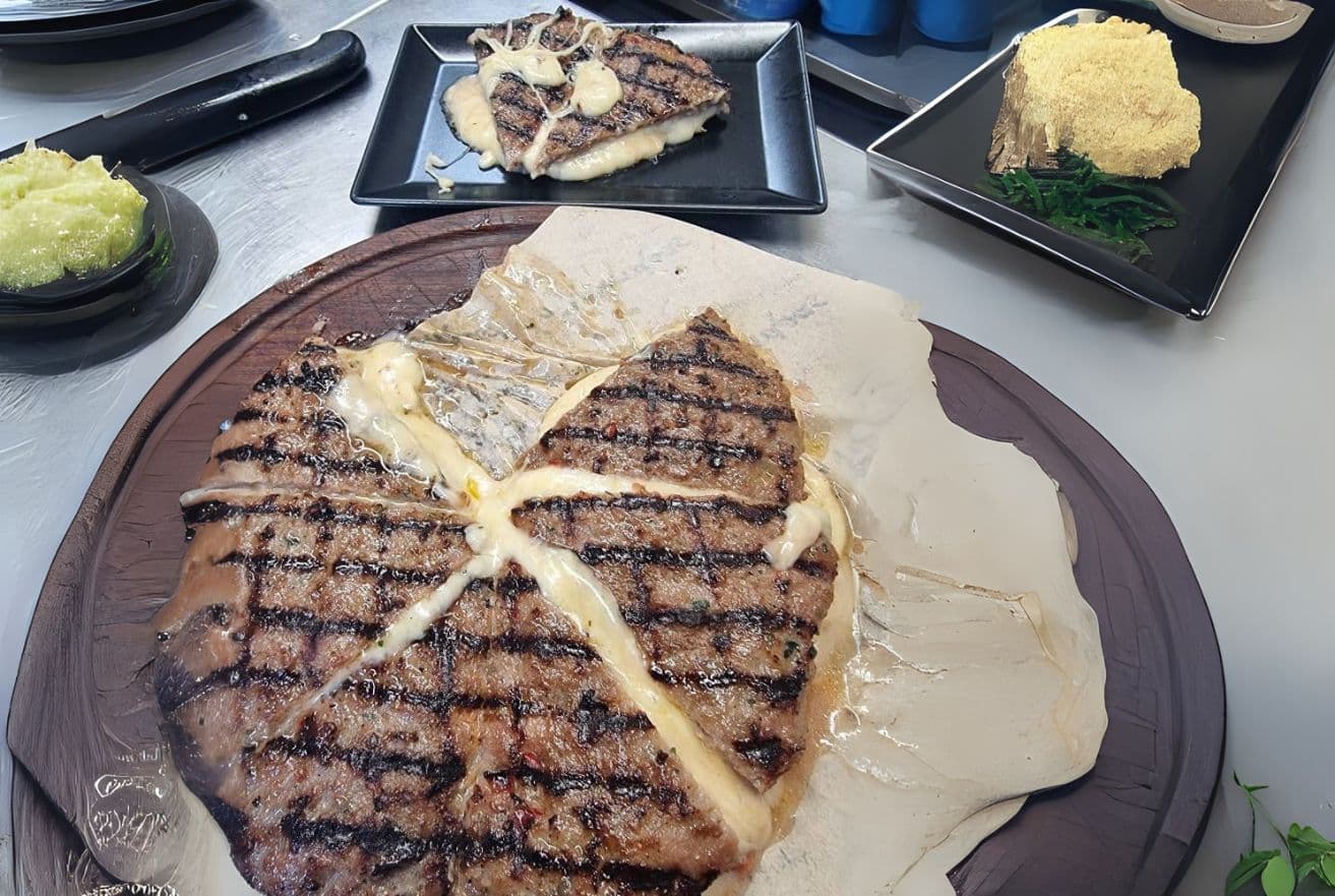 Το εμπνεύστηκε, το δοκίμασε, το άλλαξε ξανά και ξανά και έβγαλε τελικά ενα τελικό προϊον που όμοιό του δεν υπάρχει αλλού. Το απόλυτο μπιφτέκι, με 100% μοσχαρίσιο κιμά και τυρί μοτσαρέλα στη γέμισή του, σου δίνει τη γεύση που δεν έχεις ξανανιώσει ποτέ ξανά. Άλλη μια συνταγή που έβαλε, είναι τα αυθεντικά σουτζουκάκια Θεσσαλονίκης, για τους λάτρεις των πιο πικάντικων. Και τα δυο πολύ ψαγμένα και για μερακλήδες.