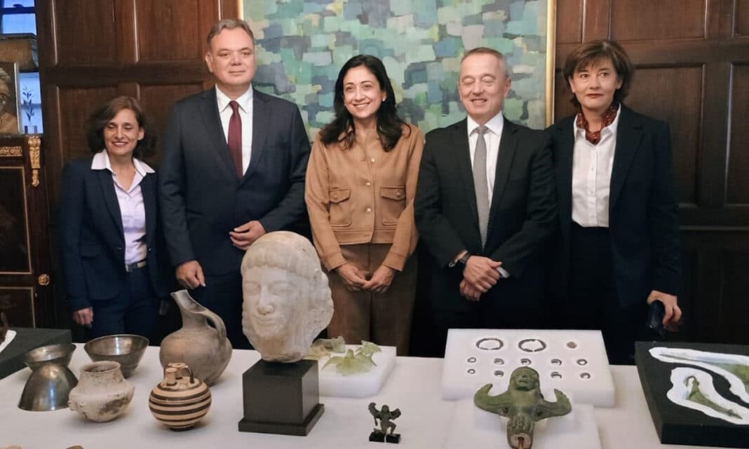 Εικοσιεννέα ελληνικές αρχαιότητες παραδόθηκαν στις ελληνικές Αρχές την Παρασκευή 3 Οκτωβρίου σε τελετή στο Γενικό Προξενείο της Νέας Υόρκης, παρουσία του επικεφαλής της Antiquities Trafficking Unit Matthew Bogdanos, του Γενικού Γραμματέα Πολιτισμού Γεωργίου Διδασκάλου και της Γενικής Προξένου Ιφιγένειας Καναρά.