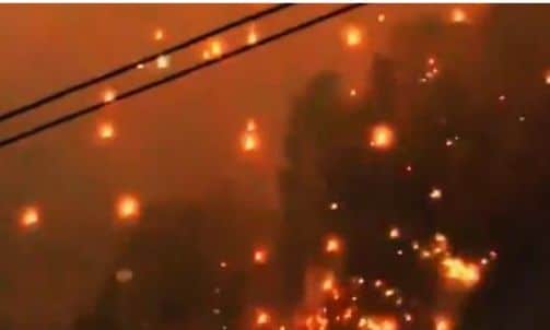 Βίντεο που κοινοποιήθηκαν στα μέσα κοινωνικής δικτύωσης δείχνουν μπάλες φωτιάς να πέφτουν από τον ουρανό και να χτυπούν εγκαταστάσεις που είχαν κατασκευαστεί για την εκδήλωση, προκαλώντας ακόμη και φωτιά.