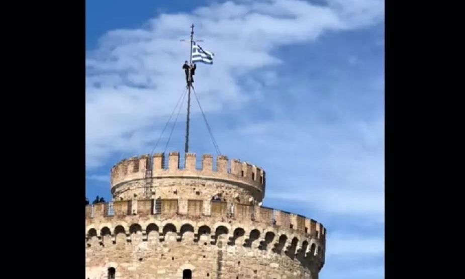 Δύο άτομα νεαρής ηλικίας σκαρφάλωσαν στον ιστό της ελληνικής σημαίας που βρίσκεται στην κορυφή του Λευκού Πύργου με σκοπό να… τραβήξουν βίντεο.