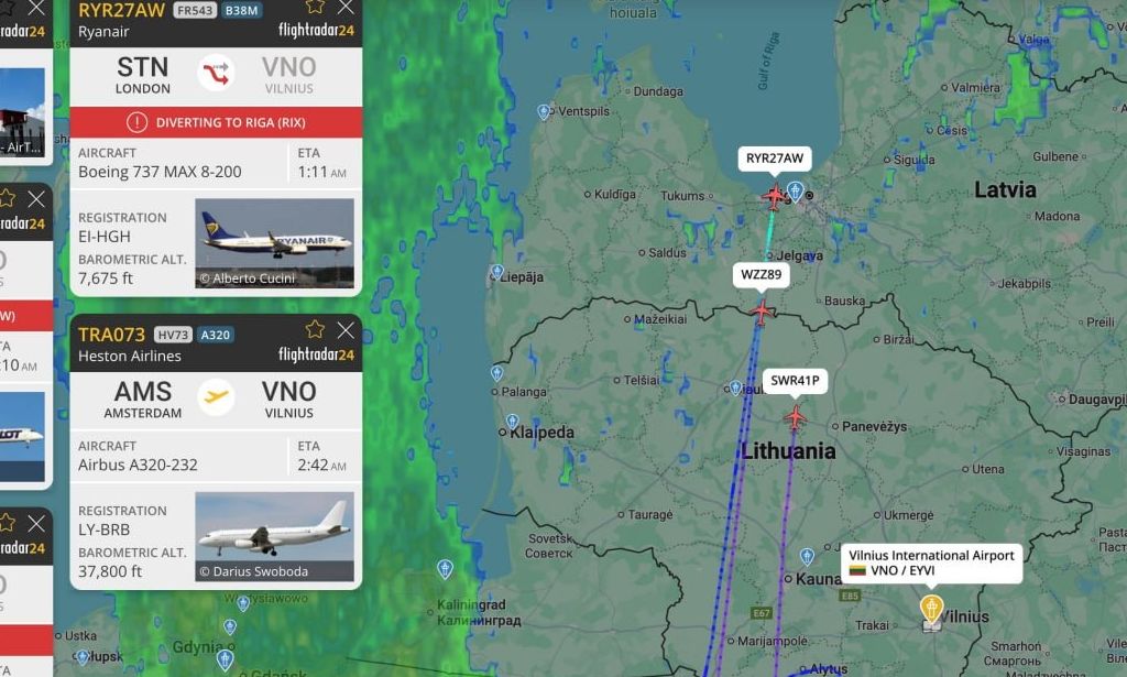 Το αεροδρόμιο του Βίλνιους σταμάτησε να δέχεται πτήσεις το Σάββατο το βράδυ και τα αεροπλάνα εκτρέπονταν προς το Κάουνας, τη Ρίγα, τη Βαρσοβία και το Γκντανσκ.
