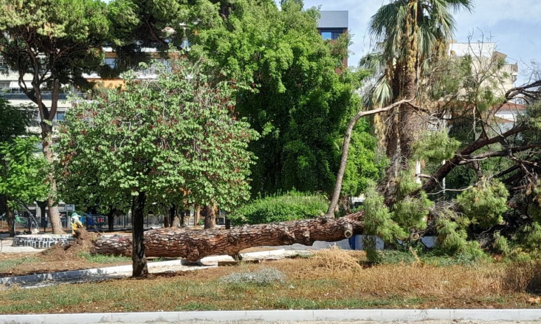 Αναστάτωση στην Πάτρα: Κατέρρευσε πεύκο 15 μέτρων στην Πλατεία Όλγας