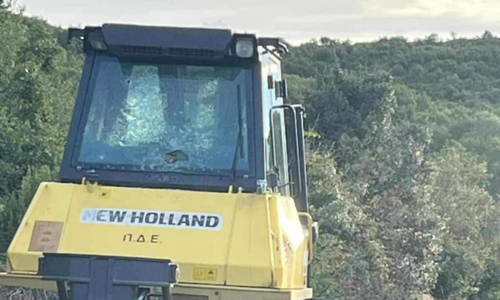 Άγνωστος πυροβόλησε με κυνηγετικό όπλο σε μηχάνημα της Περιφέρειας Δυτικής Ελλάδας, προκαλώντας του ζημιές, όπως φαίνεται και στη φωτογραφία του agrinionews.gr.