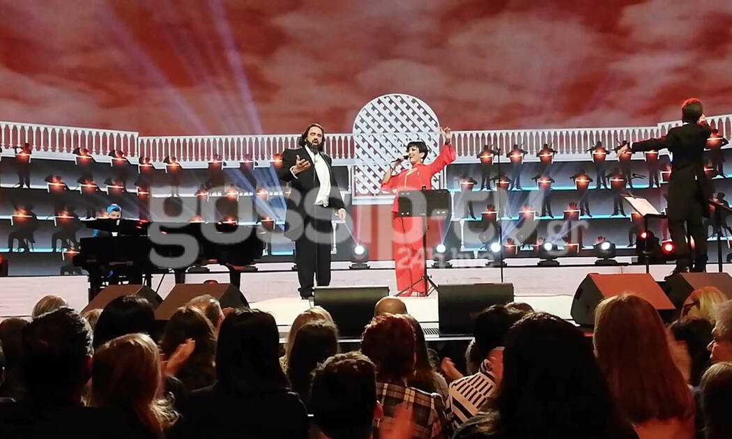 Η Ελένη Φιλίνη και ο Βαγγέλης Παναγόπουλος επέλεξαν να ενσαρκώσουν για τη βραδιά του τελικού το ντουέτο της Liza Minnelli και του Luciano Pavarotti.