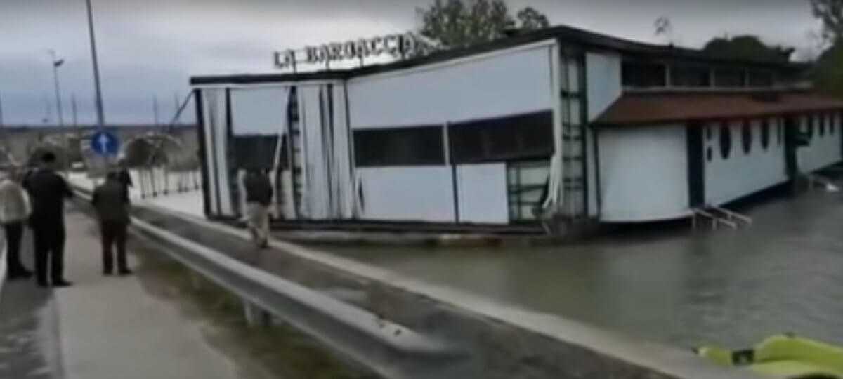 Σφοδρή κακοκαιρία πλήττει τη βόρεια Ιταλία. Θύμα των καιρικών φαινομένων έπεσε κι ένα πλωτό εστιατόριο που παρασύρθηκε από τους ισχυρούς ανέμους!
