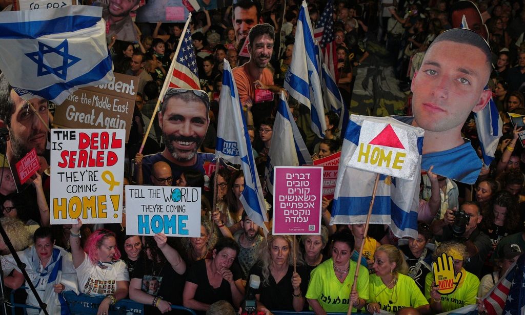 «Επιστρέφετε στο σπίτι», είπε απευθυνόμενος στο πλήθος στην «πλατεία των ομήρων» ο αμερικανός ειδικός απεσταλμένος Στιβ Γουίτκοφ, που επισκέφθηκε νωρίτερα χθες τη Γάζα, μαζί με τον γαμπρό του Ντόναλντ Τραμπ, τον Τζάρεντ Κούσνερ, και τον αρχηγό του γενικού επιτελείου του Ισραήλ, τον Εγιάλ Ζαμίρ.