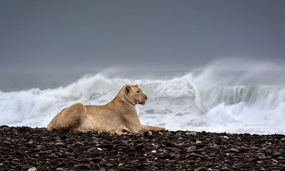 Στην άγρια Ναμίμπια, μια ομάδα ερήμων λέοντων έχει αφήσει τα παραδοσιακά κυνήγια της ερήμου και έχει μετακομίσει κατά μήκος του Ατλαντικού, για να γίνει η μοναδική στον κόσμο ομάδα ναυτικών λέοντων. Ο φωτογράφος Griet Van Malderen αιχμαλώτισε αυτή την εκπληκτική αλλαγή στη συμπεριφορά τους.